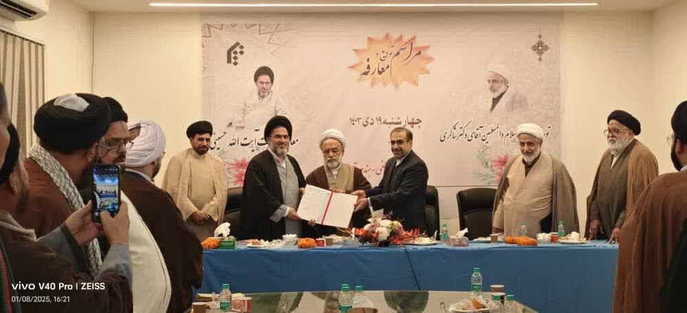 পরিশেষে ভারতের ইরানের সর্বোচ্চ নেতার প্রতিনিধি প্রাক্তন প্রতিনিধির প্রতি কৃতজ্ঞতা ফলকের লেখাটি পড়ে শোনান এবং নতুন প্রতিনিধির কার্যক্রম শুরুর শুভ ঘোষণা করেন।