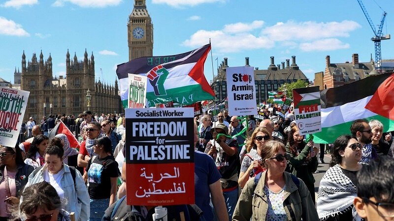 লন্ডনেও লক্ষাধিক ব্রিটিশ নাগরিক ও ফিলিস্তিনপন্থীরা ব্রিটিশ প্রধানমন্ত্রী কার্যালয়ের দিকে পদযাত্রা করেছে। তারা গাজায় চলমান গণহত্যা এবং আন্তর্জাতিক সম্প্রদায়ের নীরবতার বিরুদ্ধে তীব্র ক্ষোভ প্রকাশ করেছে।