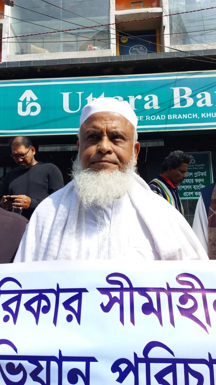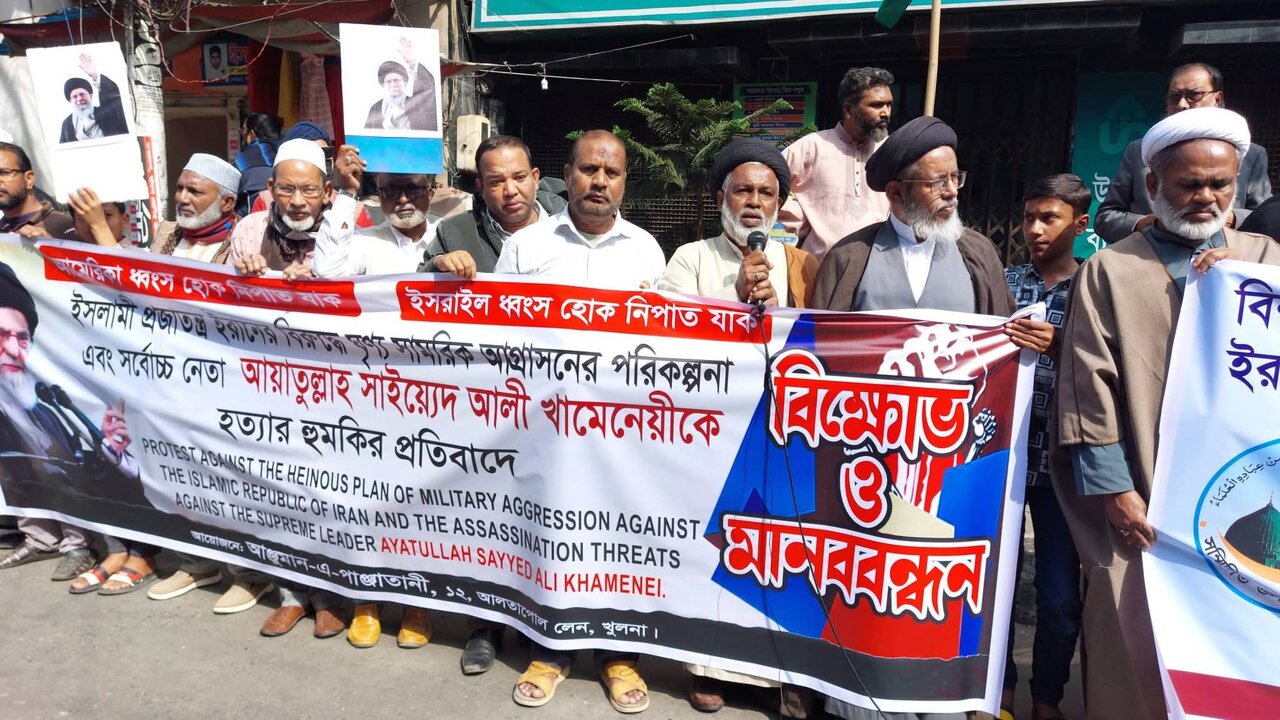 হাওজা নিউজ এজেন্সি: আঞ্জুমান-এ-পাঞ্জাতানী, খুলনা-এর উদ্যোগে ৩১ জানুয়ারি ২০২৬ ইং, শনিবার সকাল ১১টায় খুলনা পিকচার প্যালেস মোড়ে এ মানববন্ধনের আয়োজন করা হয়।